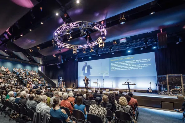 The brief from the church was to create an auditorium that would set the stage for a powerful worship experience week after week.