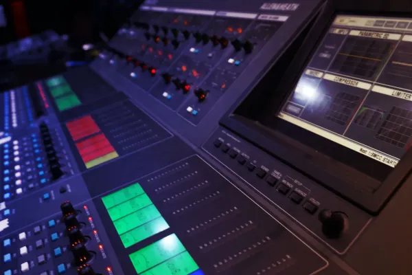A lighting rig consisting of multiple moving yoke spots and washes are supported by LED cyc bars, LED cans, and Profiles & Fresnel fixtures to produce a powerful effect. All dimming, power control, rigging, and DMX control provides the infrastructure for any size of event.